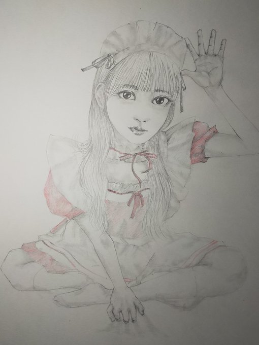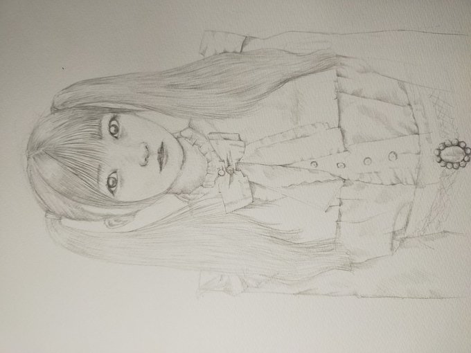 こんばんは、 今日は、一日雨。 #鉛筆画 #デッサン #女のコ #コスプレ #ちょい画