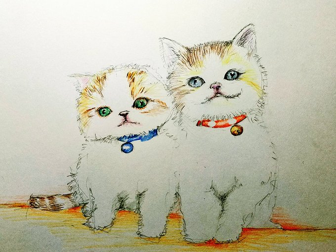 こんばんは、 休みも終わりですね。 鈍った体を鍛え直し、さあ仕事。 #色鉛筆画 #ペット #小猫 #イラスト