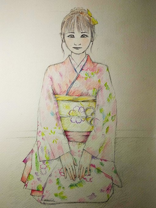 1 8 こんばんは、 今年になって、それほど寒い日はないですの。 #色鉛筆画 #女のコ #着物 #新年 #きれい 23/01/19 17:31