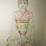 こんばんは、 今年になって、それほど寒い日はないですの。 #色鉛筆画 #女のコ #着物 #新年 #きれい