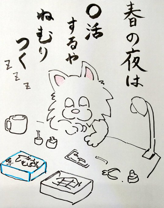 今夜の一枚です(^ω^) 春の夜は ○活するや ねむりつく #心の俳句 #イラスト #絵 #プラモ #息抜きしてね #犬