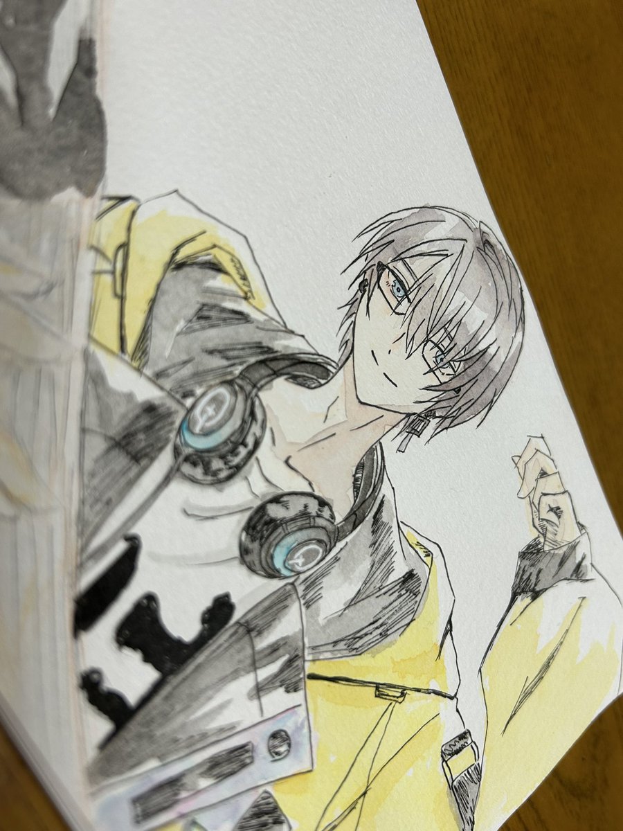 インクとガラスペンで色塗り スキャンすると分からないけど原画はキラキラなんだよ〜 #何色_甲斐田晴 #描いた晴