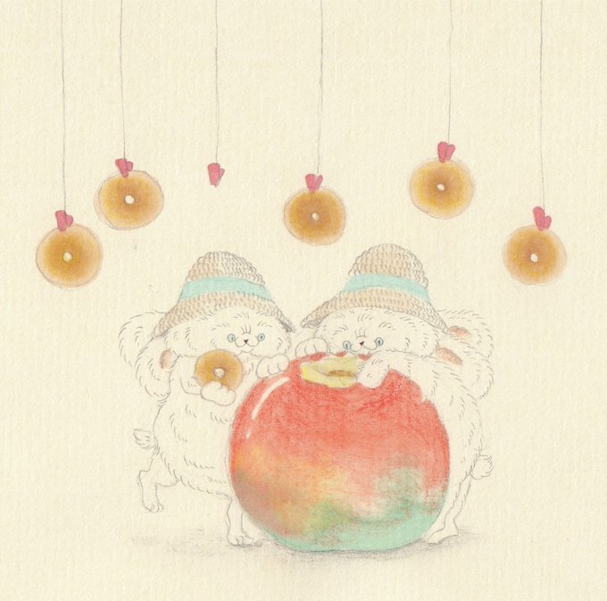 リンゴにはドーナツが10こ入る #イラスト #illustrator #illustration #リンゴ #ドーナツ #うさぎ #ねこ
