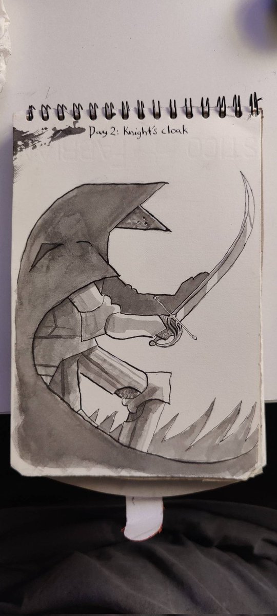 Day 2: knight's cloak My brush went a little crazy today so i wont do the blacks, was a fun one still, gonna have to find a better brush tomorrow #Cloaktober #inktober