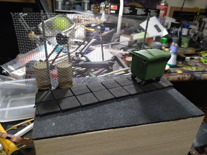 本日のパトジオラマ✨ 昨日と変わってなくね?🤔、、、と思われるカモしれませんが、水路の蓋を作りました😤 造形的にはこんな感じかな? 明日&明後日は仕事忙しく作業できないので、週末から塗装に入る予定です🖌 #パトレイバー模型部