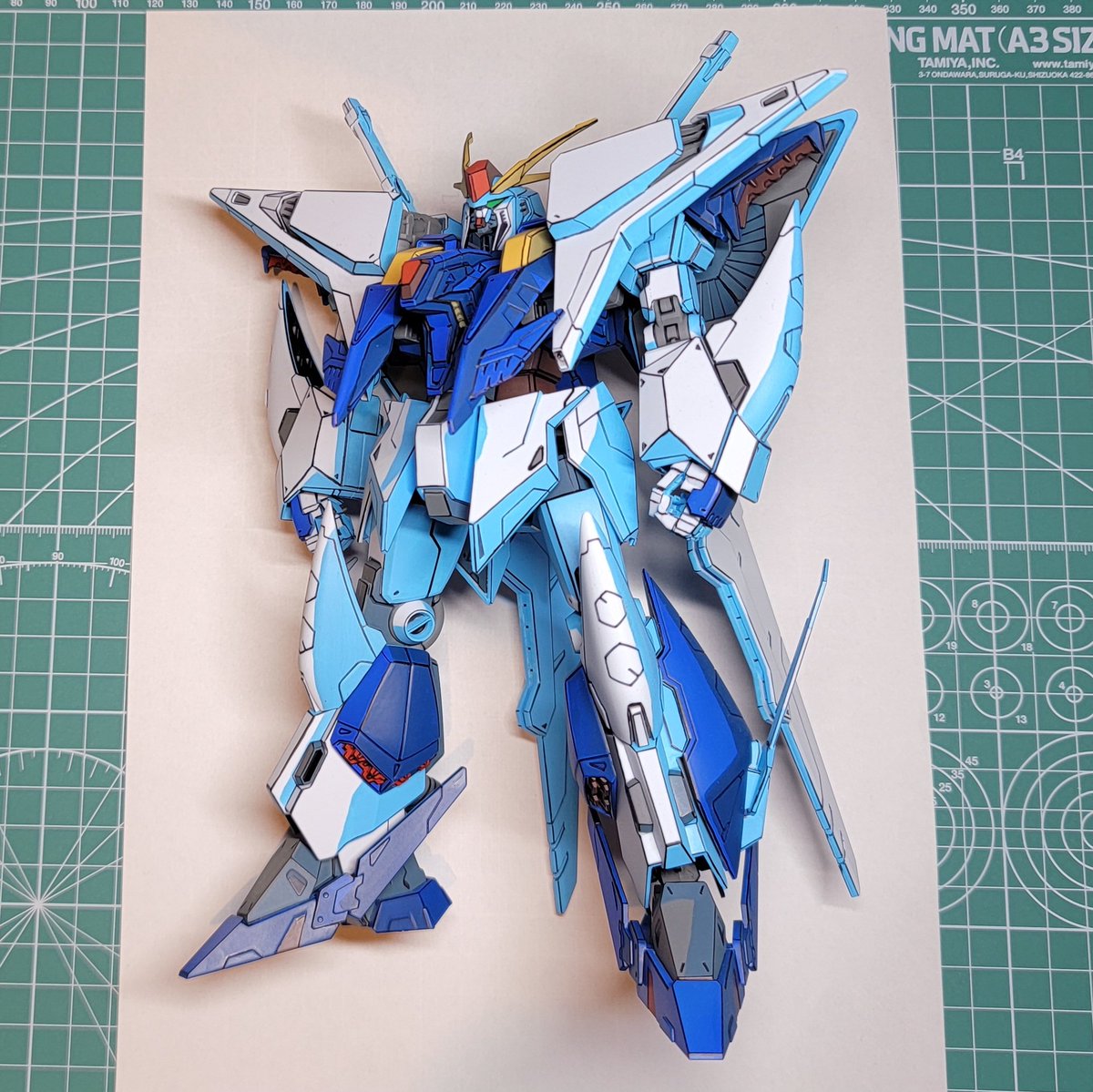 ゼータガンダムヘッド ディスプレイベース 完成! 「水の星へ愛をこめて」のジャケットを意識して仕上げてみました。 #ガンプラ #アニメ塗り #イラスト風模型