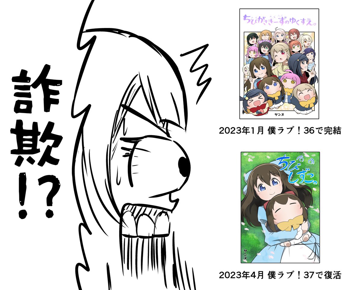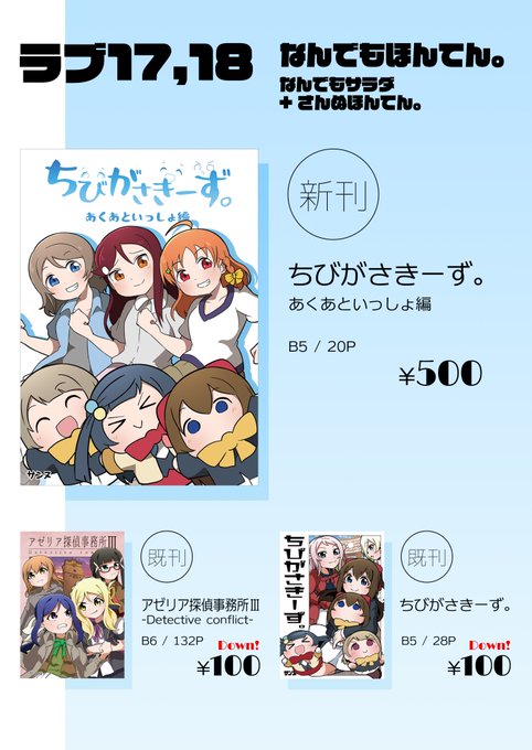 新刊「ちびがさきーず。あくあといっしょ編」サンプルです。 Aqoursのみんなとちびしずこ達がご対面していろいろやらかすお話です。 20P / 500円 ■通販 melonbooks.co.jp/detail/detail.… 予約受付中です! #ちびがさきーず