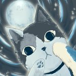 第30回 配色指定おえかき 配色レシピ「068番 満月の夜」 お題「茶🐈々🐈丸」 #配色アイデア手帖 #配色指定おえかき 水たまりに映る🌕と自分を不思議そうに見る茶/々/丸〜 みたいなイメージで描きました🥰