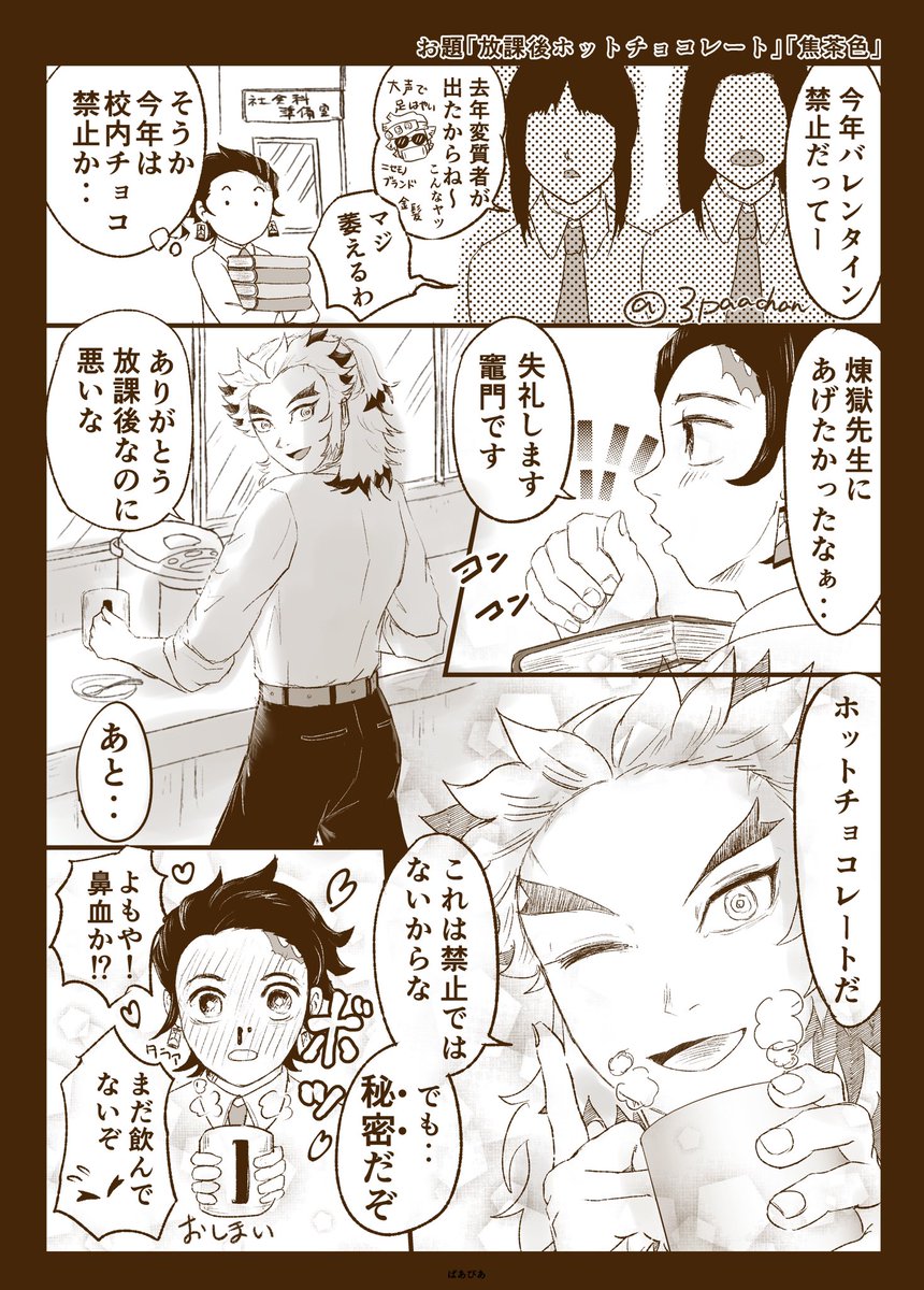 #rntnワンドロワンライ お題🔥🎴 『放課後ホットチョコレート』 『焦茶色』(色お題) 少し早いけどHappy🍫V🍫D漫画 放課後の秘密って…いいよね☺️💕