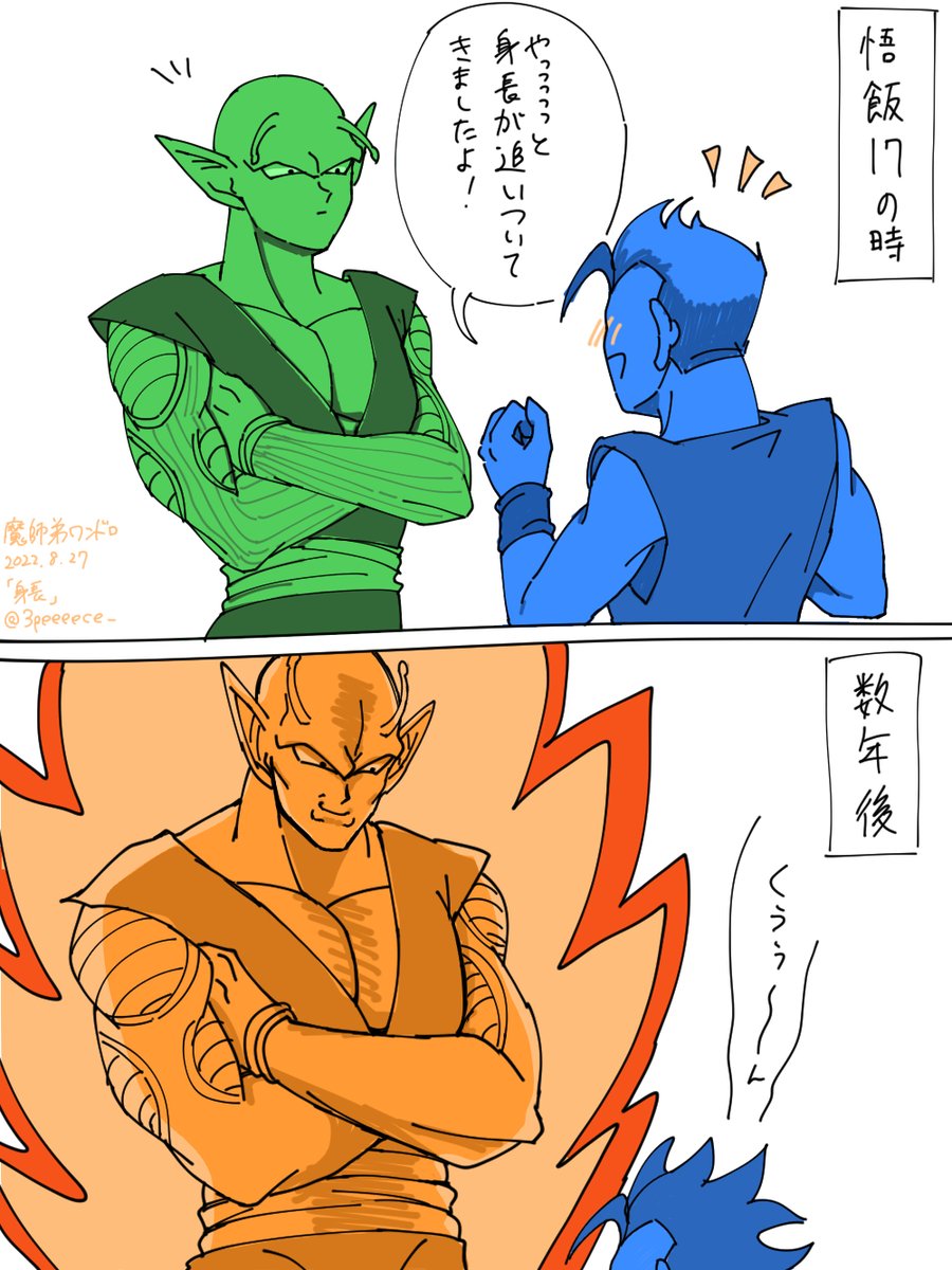 19 139 #深夜の魔師弟お絵描き字書き60分一本勝負 「身長」 ちいさいころからの付き合いだし、気にすることもあったんじゃなかろうか 22/08/27 22:48