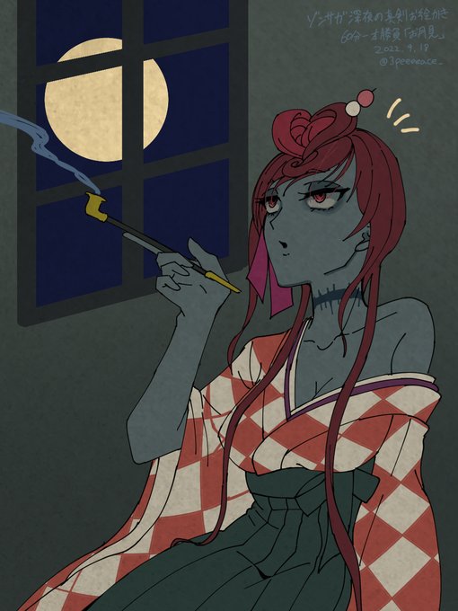 25 81 #ゾンサガ版深夜の真剣お絵かき60分一本勝負 「お月見」 この後かんざしの団子を食べ始めます 22/09/19 00:03