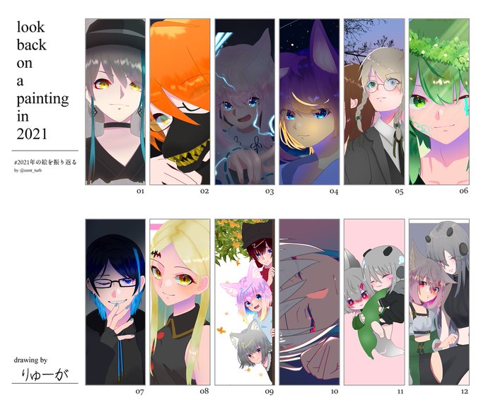 #2021年の絵を振り返る 今年描いた絵数えたら100枚超えてた。 月によって描いてる枚数バラバラだけど、最高で一月に25枚描いてるときもあった。