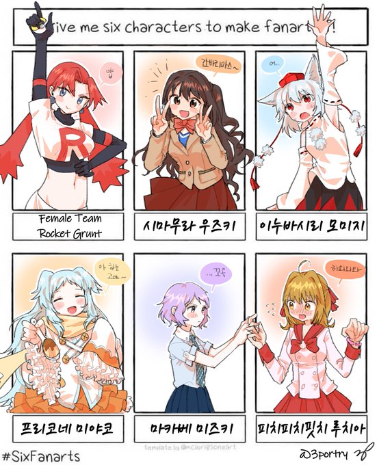 7 20 #SixFanarts #sixfanartchallenge 완성완성~ #ロケット団 #TeamRocket #島村卯月 #犬走椛 #ミヤコ🍮 #まかべみずき #七海るちあ 20/04/16 04:54