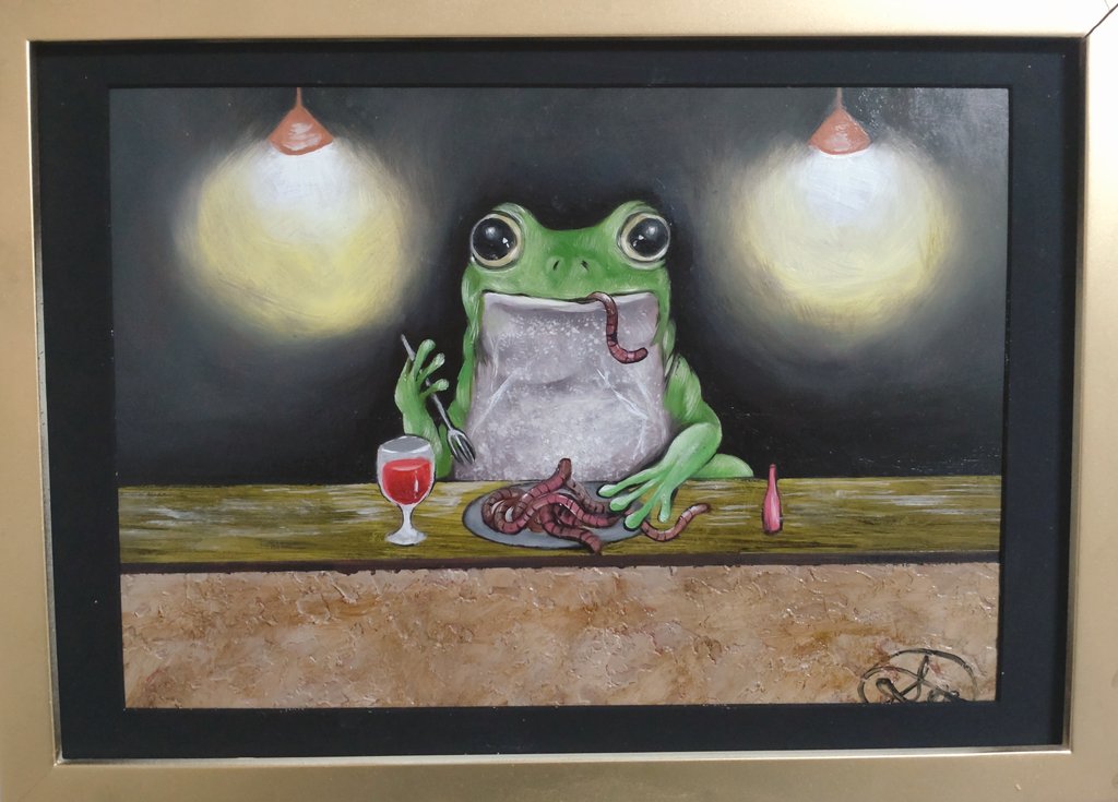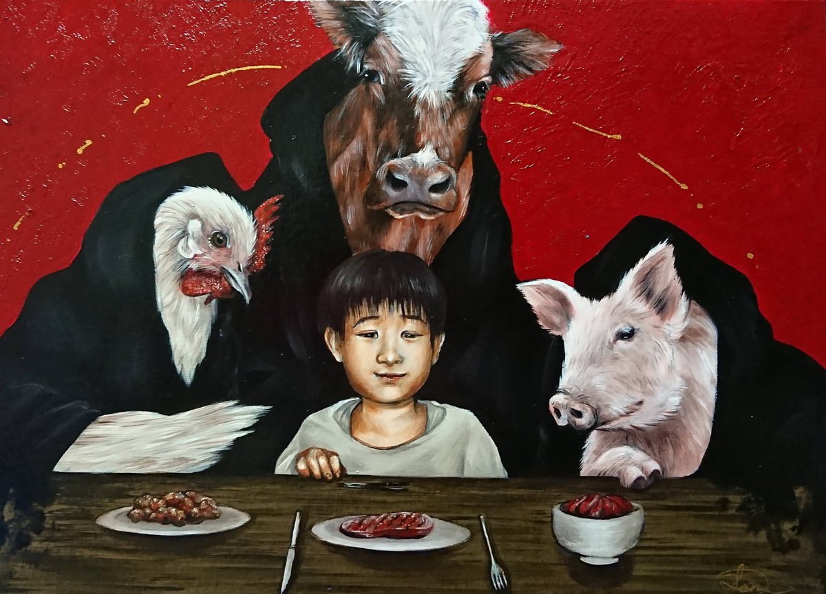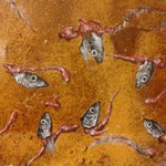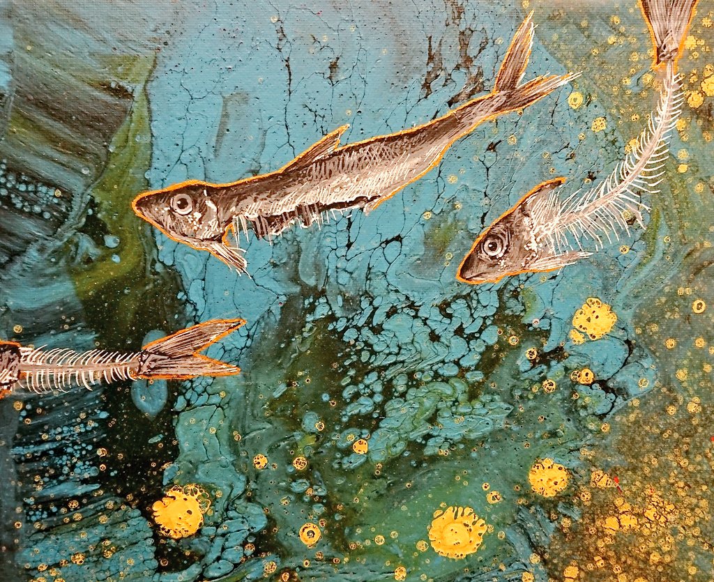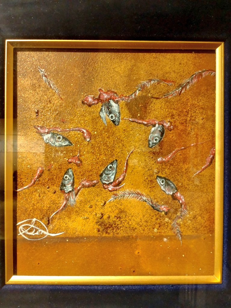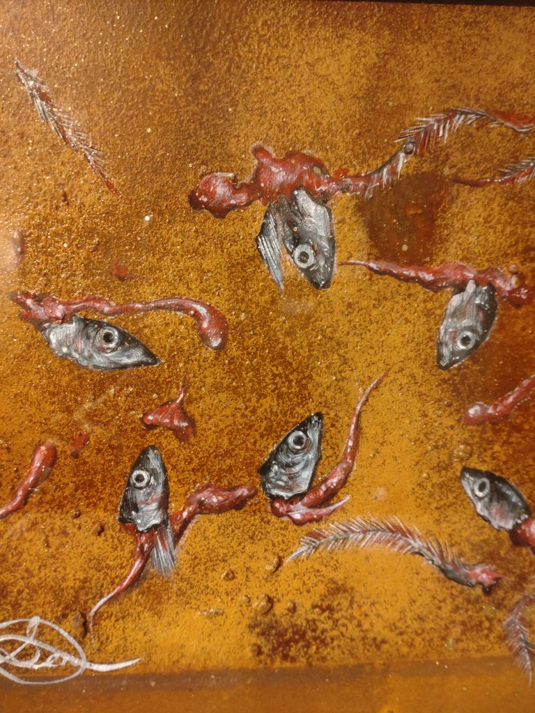 「キビナゴの夢」 鹿児島で初めて食べたキビナゴ。 慣れた手付きでキビナゴは捌かれ、まな板の上で頭だけになりながら泳いでいました。 また必ず食べたい味として記憶に残る魚でした。 . #油絵 #アナログ絵 #キビナゴ #鹿児島 #絵描きさんと繋がりたい #絵画 #oilpainting