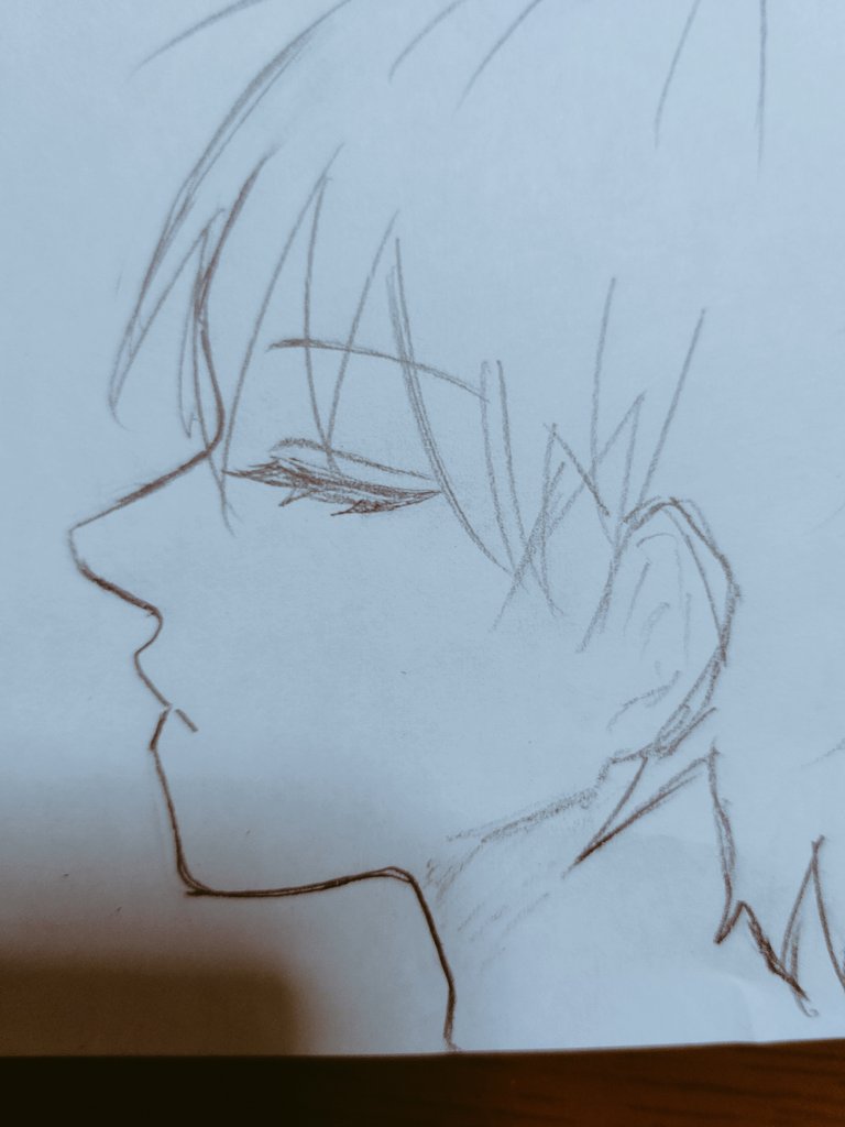 剣持の横顔 紙の下に描いちゃったから、切れてしまった… 色塗りが苦手なので、このまま載せさせてください🙇🏻♀️ #金剛力也像 #アナログイラスト #イラスト