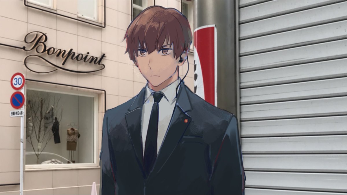 24 100 先日聖地を巡礼したときに撮った薬局付近の写真に星野くんを描いてみました 21/11/22 01:01
