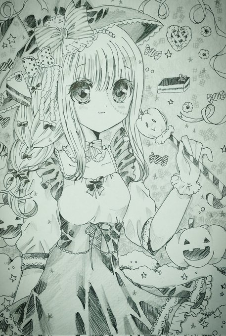 ハロウィンっぽいらくがき◥(ฅº👅ºฅ)◤