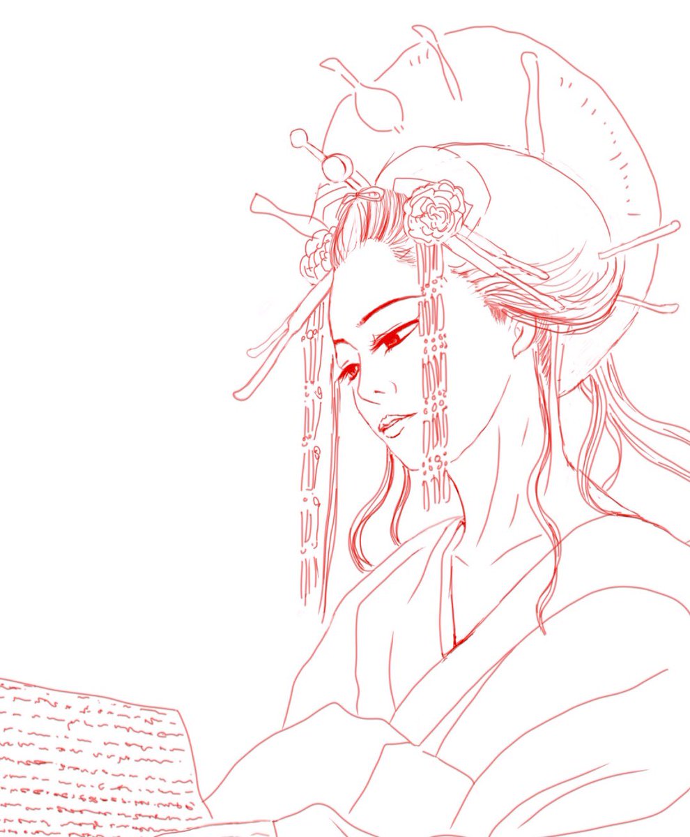 なんとなく「和」の気分です。 描きかけの絵ですが、髪型もそうだし髪飾りとか全く浮かばないし、難しい。 #花魁 #イラスト好きさんと繋がりたい #お絵描き好きさんと繋がりたい #お絵描き #イラスト #和 #AdobeFresco