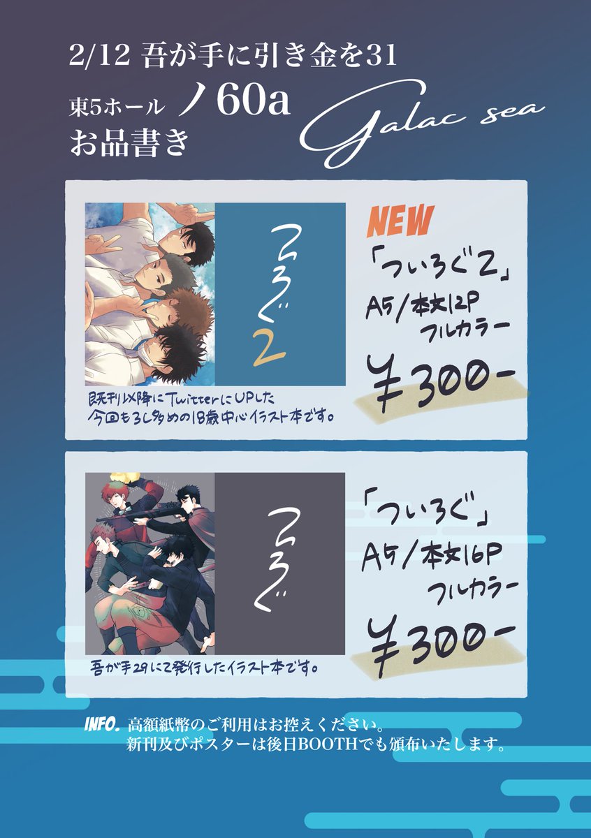 2/12 吾が手に引き金を31 【 東5ノ60a / Galac sea 】 お品書きと新刊サンプルです🌷 あとは無配のなにかを持っていけるように頑張ろ~❗️😄 当日はどうぞよろしくお願いいたします🫶 twitter.com/403_ill/status…