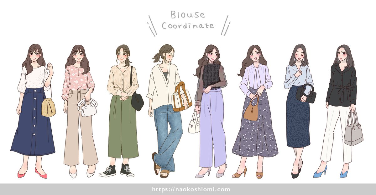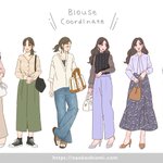 【お仕事紹介】 きれい目にもカジュアルにも大活躍なブラウスコーデ✨ ブラウスはいろんなデザインがあって見ているだけでも楽しい! ▼michillさま michill.jp #ファッションイラスト #コーデイラスト