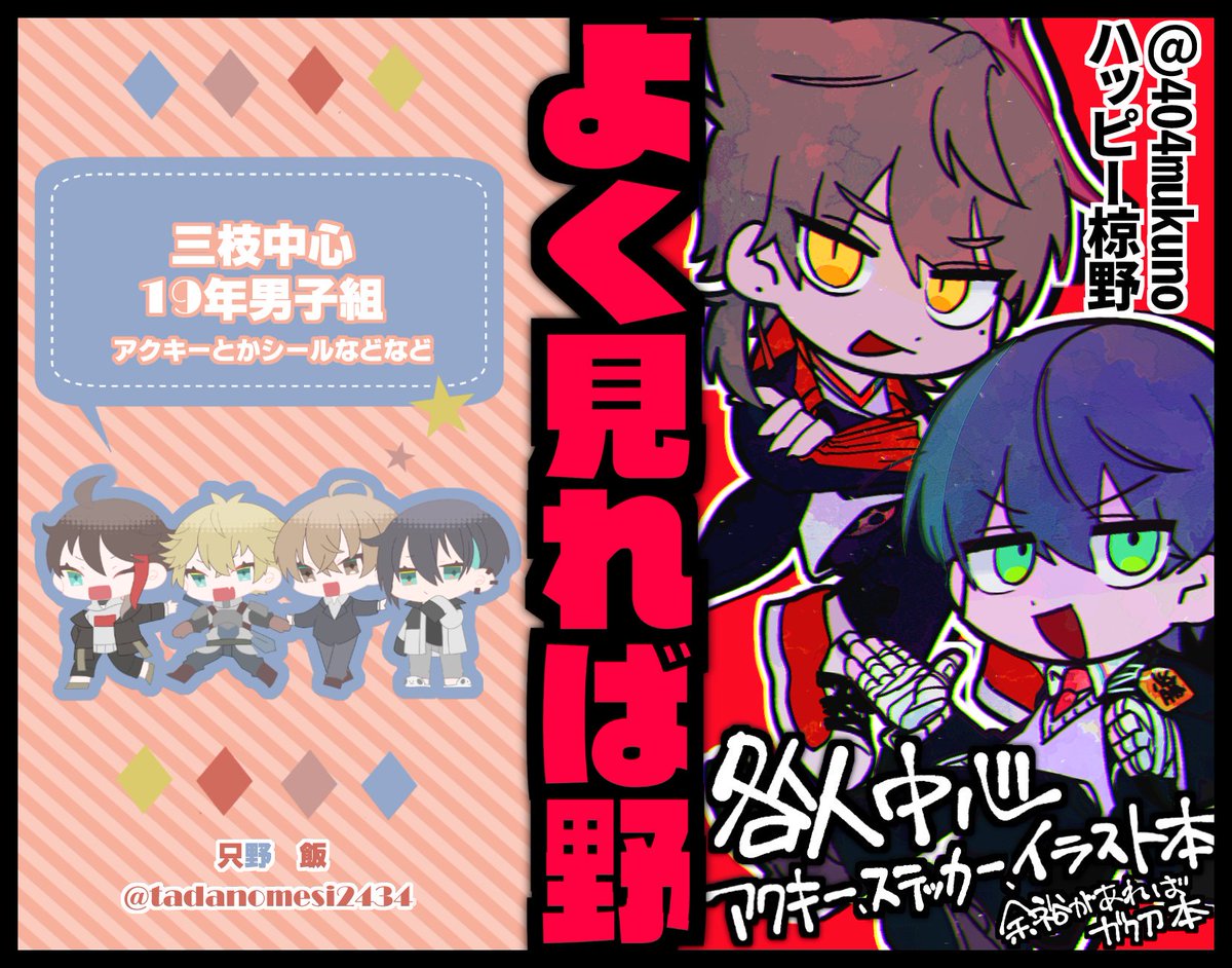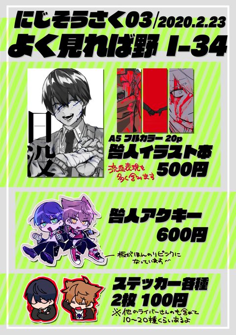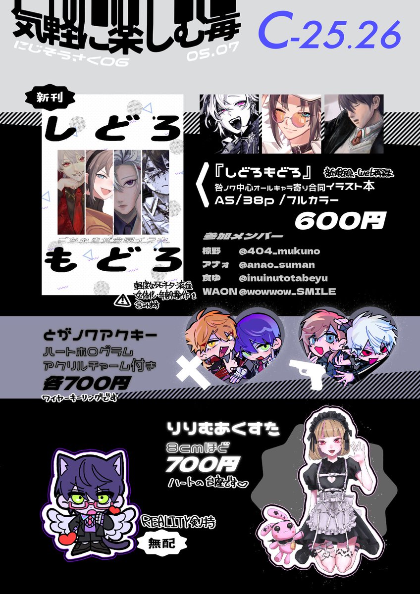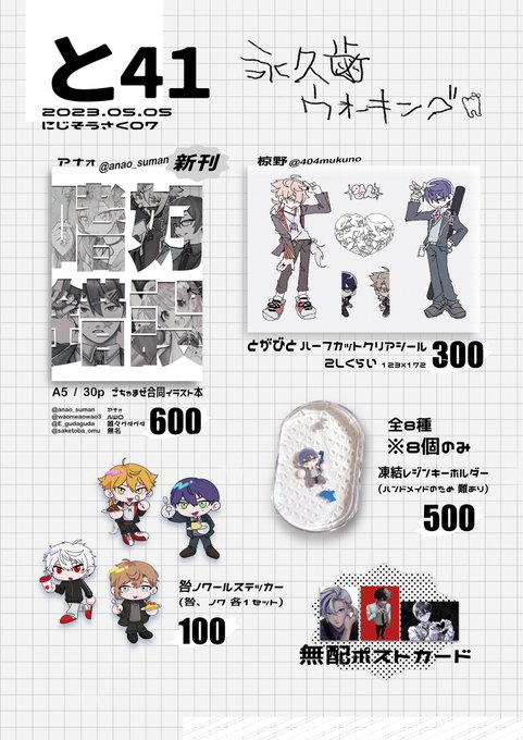 #にじそうさく07 [ と- 41 ] お品書きです.ᐟ.ᐟ 𝗻𝗲𝘄 (アナォ #anao_suman) ごちゃまぜ合同イラスト本 咎ノワステッカー 咎人ハーフカットクリアシール けんもちレジンキーホルダー (※ハンドメイド なくなり次第頒布終了) イラスト本 ハーフカットシール ステッカーは後日通販します