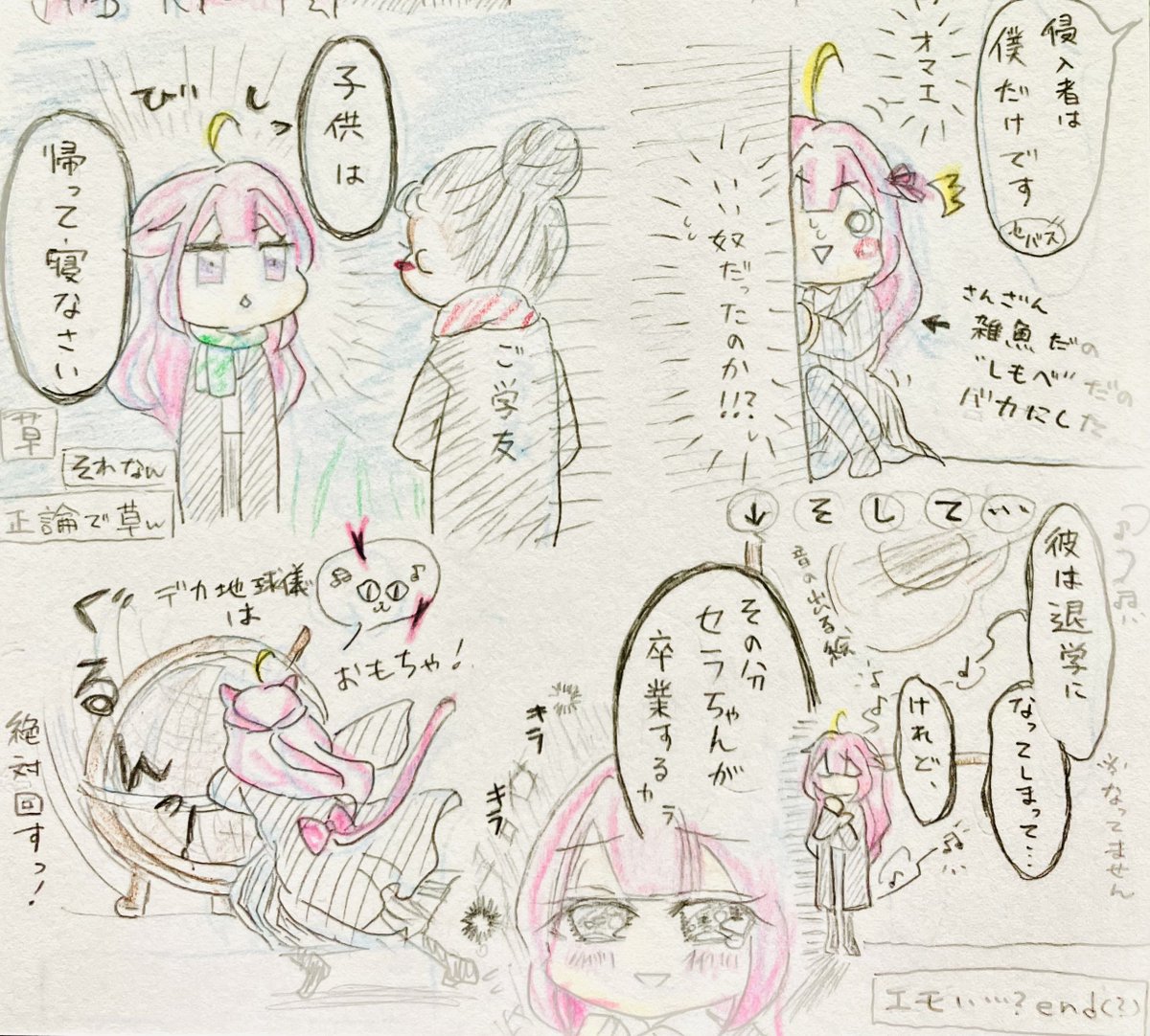 何度でも…新髪型かわいい!!!!!!!! #Sera_art おまけ:朝活終わりの挨拶が「おやすみ🌙💤」なケセラとセラちゃん😆