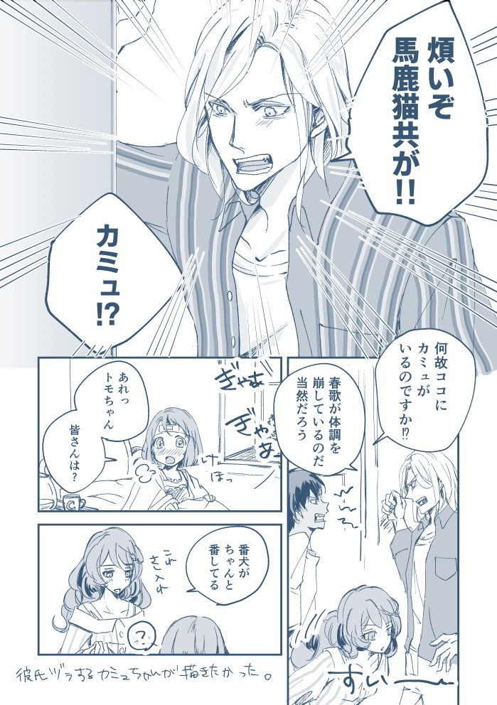 27 152 【カミュ春】5/3プリコン無配マンガ スペースで受け取っていただいた皆様ありがとうございました! 中身なーんも時事ネタじゃないのでせめて衣装だけでも最新にと思って描きました😂 23/05/04 21:06