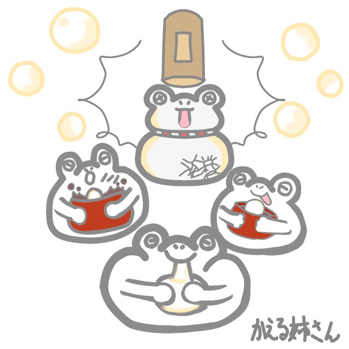 2 14 甘がえると鏡開き お汁粉に焼き餅に餅は美味しいね #イラスト #ゆるいイラスト #鏡開き 23/01/11 18:53