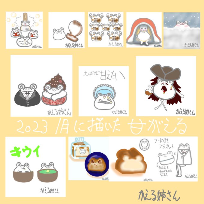 1 9 今月描いた甘がえるのイラストまとめ #イラスト #ゆるいイラスト 23/01/31 22:43