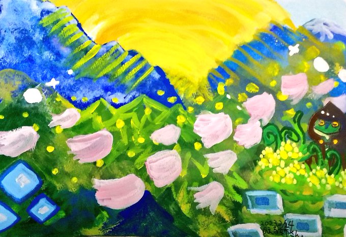 0 10 旅人いつみのイラスト 「見つけた」 春を告げる福寿草がモチーフ 幸せって小さい物なのかもしれませんね #イラスト #蛙 #風景画 #花 23/03/25 12:45