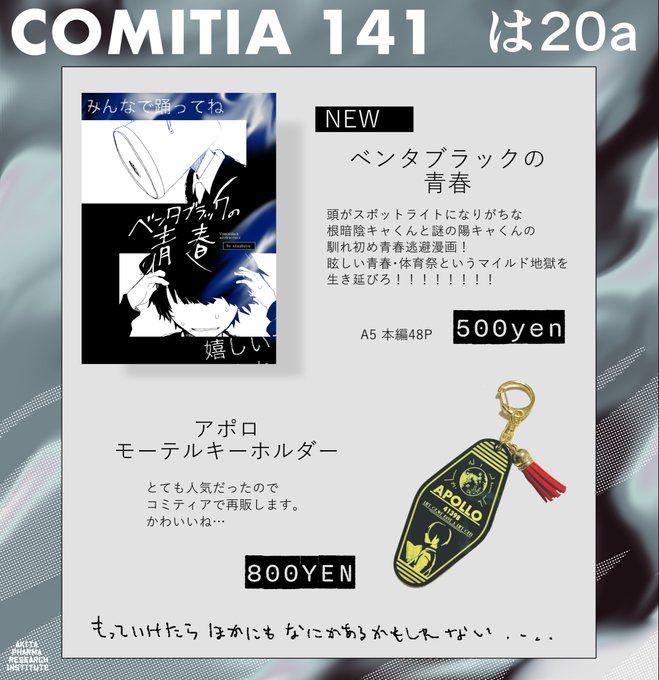 9/4 コミティア141 秋田薬品研究所のお品書きです! 当日は「は20a」にて何卒よろしくお願いします〜💡 #コミティア141 #COMITIA141
