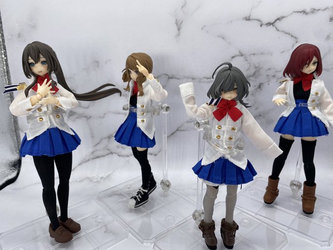 11 25 @tokyo_horizon 様のエレンスゲ制服 @heppoco_seijin 様のヘルヴォル各ヘッド 千香瑠完成からの4人集合 制服を着せて完璧になりました 良い商品を作ってくださりありがとうございます ちなみに藍は手首外してます あとは各charm作りと一葉発売を待つのみ #アサルトリリィ #アサルトリリィドール部 22/11/15 23:03