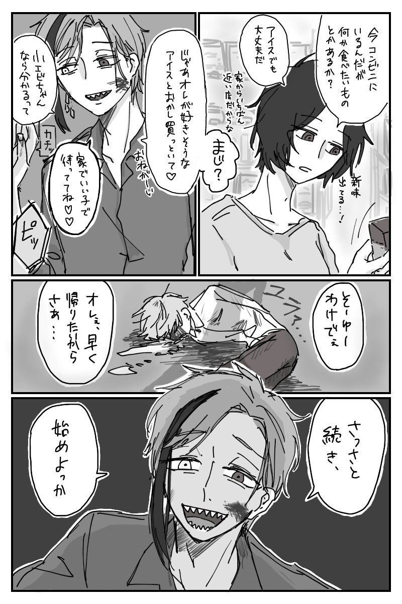 9 109 研究所から逃げ出した稚魚(成魚)×ひとりでゆったり暮らしてる監時空のイド監 アズ「アイツらは大きくなったのではなく、元に戻っただけですよ。運搬用に縮められてたみたいですね」 監「じゃあどうやって戻ったんだ?」 アズ「………………黙秘します…」 #twstプラス 21/05/14 20:28
