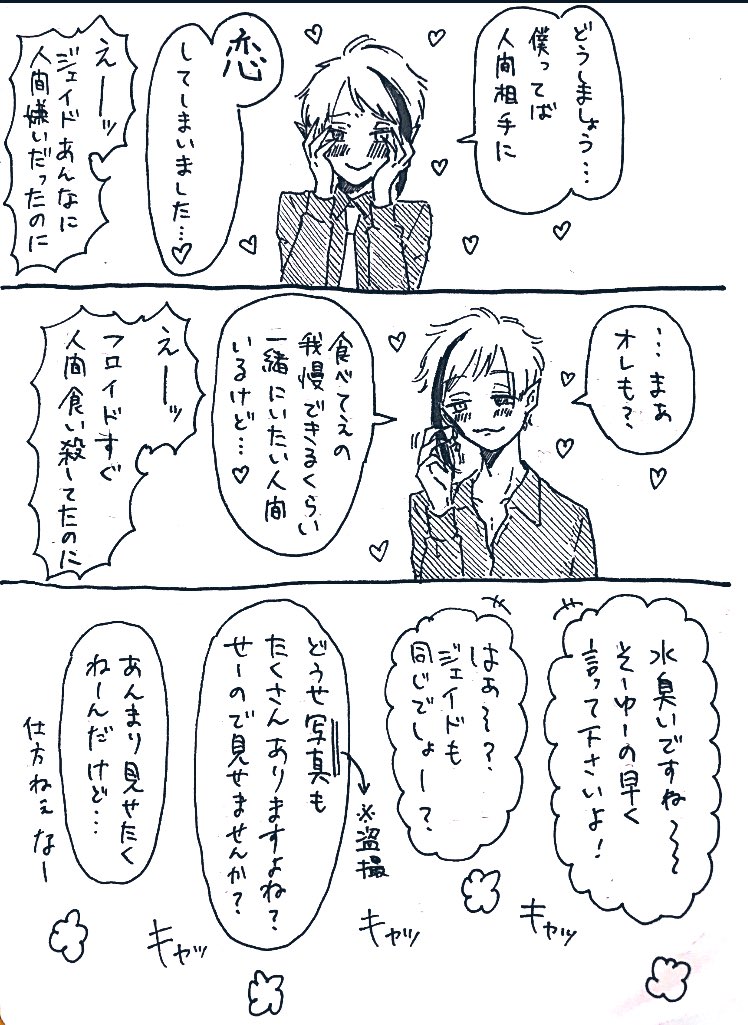 33 333 常連の女性「2人がいる部屋の壁になりたいと言っていた友達の気持ちが初めて分かりました…」 アズ監(?) 🐙🌸 ⚠️監督生顔あり #twstプラス 20/10/06 20:31