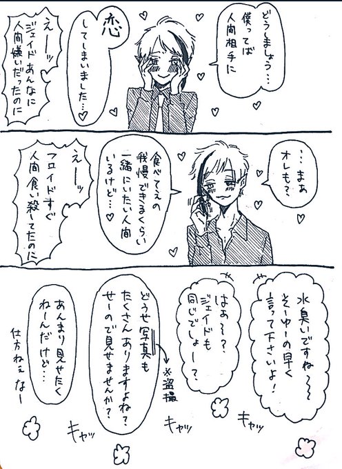 4 77 先にライバルを潰す方法をとる🐬VS相手のパーソナルスペースに入り込む方法をとる♣️ トレ→監←ジェイ ⚠️監督生顔あり #twstプラス 20/08/11 19:29