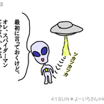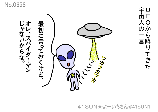 2 9 1コマ:UFOから降りてきた宇宙人の一言 #トリオもっちー #顔コン #漫画が読めるハッシュタグ #1コマ #マンガ #イラスト #落書向上委員会 #絵描きさんとつながりたい #芸術同盟 23/07/05 17:41
