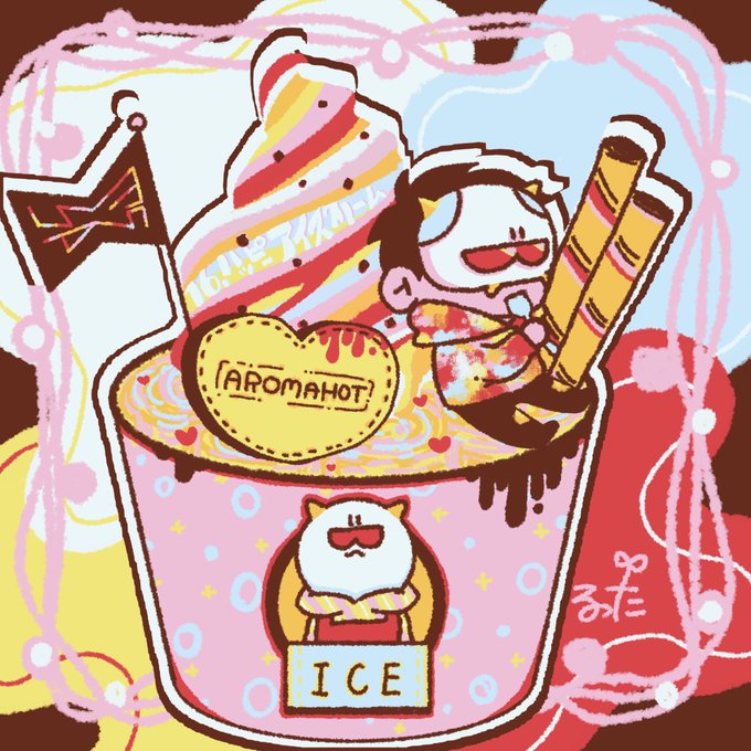 カラパレ絵! 16.ハッピーアイスクリームで👹せんせ! 原宿のろーーーるあいす食べたいぁって思いながら描いたよ🍨✨