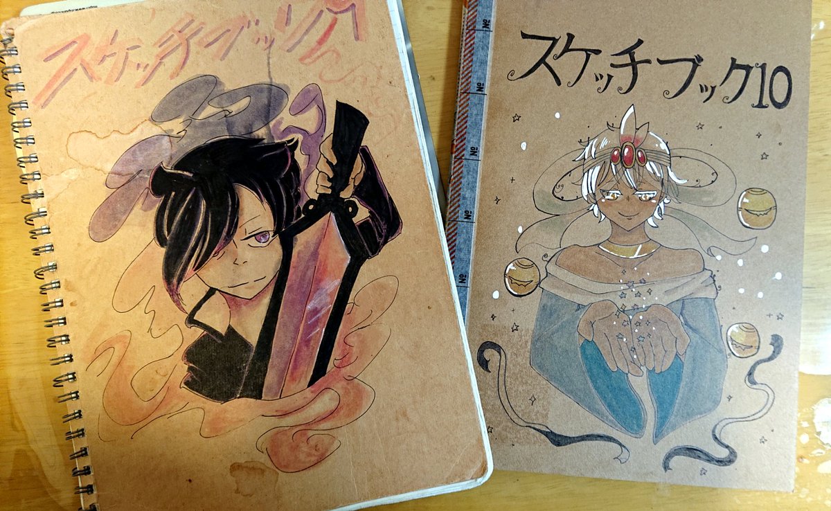 0 5 長年罫線ノートにシャーペンで落書きし続けた「スケッチブック」という名の落書きノートの9冊目が終わりににさしかかろうとするので10冊目を買って表紙のイラストを描いてました。 表紙の子はうちの子の星の子ハウトくん 21/11/26 17:20