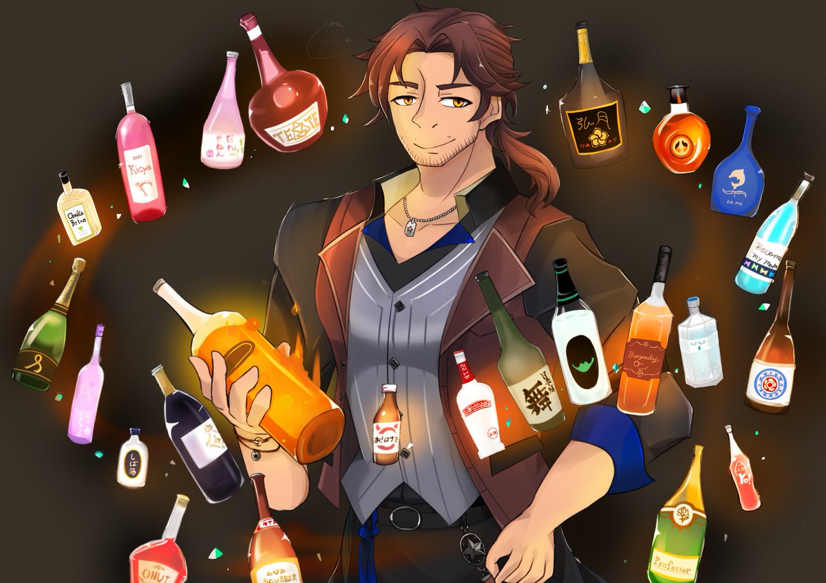 #自分は好きだけど伸びなかった作品 3周年記念のやつ〜 周りの酒瓶のデザインが今でもお気にいいり