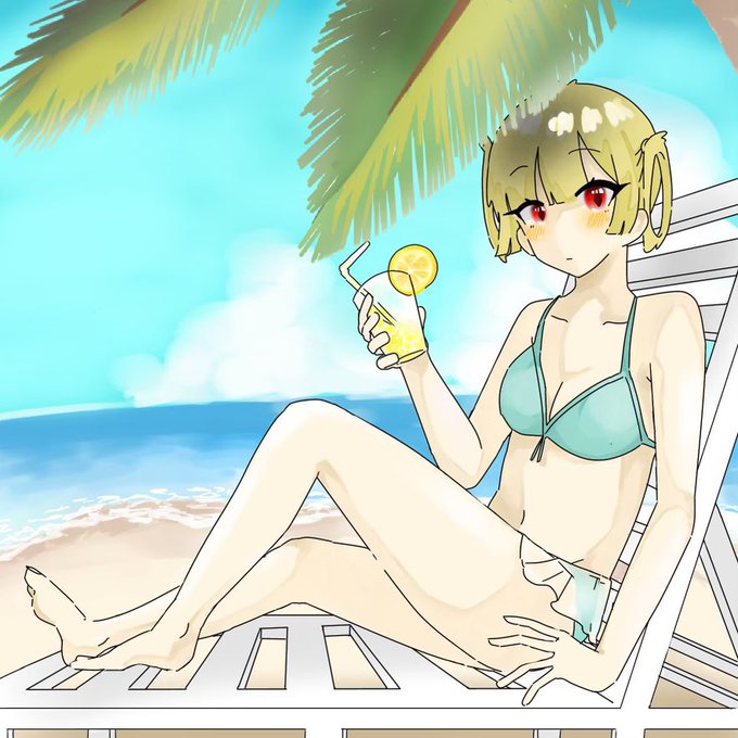 1 11 水着イラストです!7時間の努力です😭😭😭背景久しぶりに描いたので下手っぴです #イラスト #デジタルイラスト 22/08/17 05:36