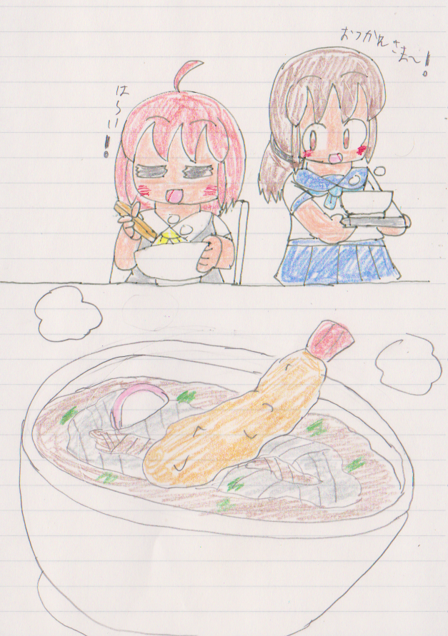 年越しそばを満喫するあさひちゃんと吹雪ちゃんで描き納め 来年もよろしくお願いします!