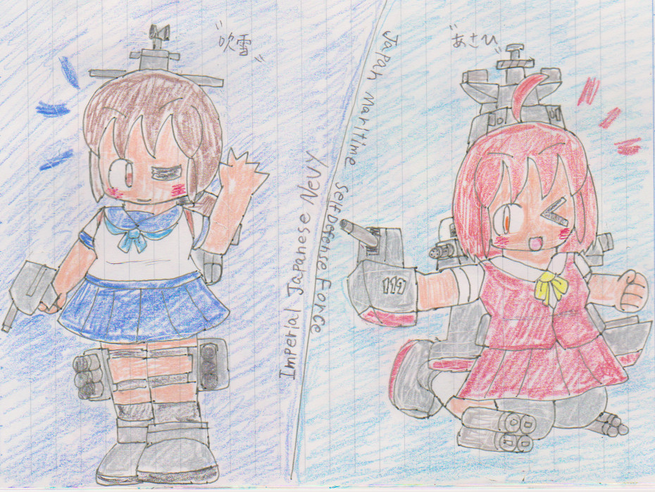 描き初めの艦乙女いずも&あさひ 改めて今年もよろしくお願いします