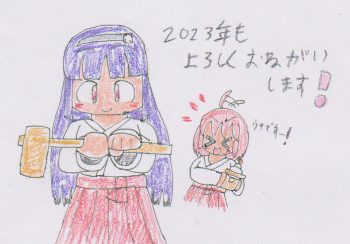 6 22 描き初めの艦乙女いずも&あさひ 改めて今年もよろしくお願いします 23/01/01 22:13