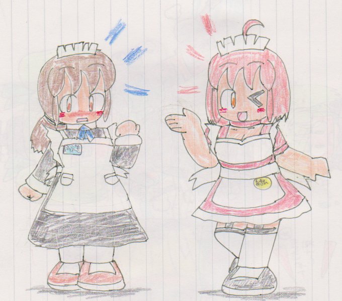 メイドの日らしいので、艦これ吹雪ちゃんとうちの子あさひちゃん過去絵