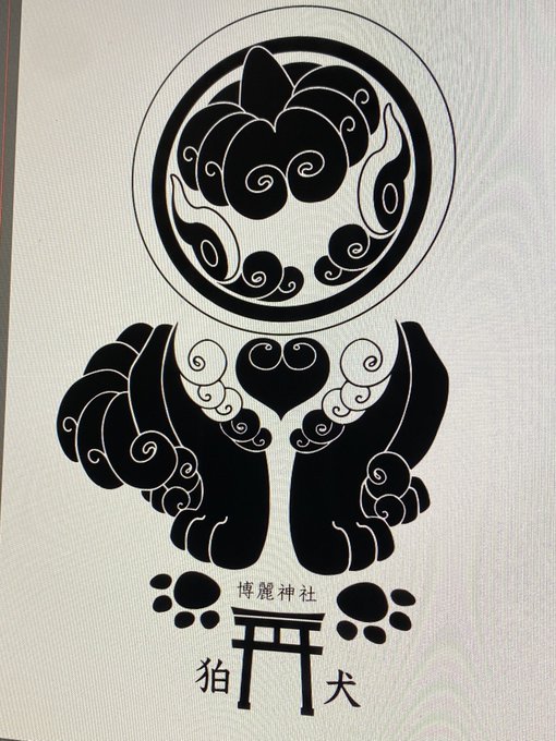 ちなみに当スタンプデザインはこちら! 昔作った東方家紋シリーズの阿吽まんまですが、押すと狛犬が完成します🐕⛩ 首傾げても可愛い!🤔 お口を落書きしても可愛い🐾 台紙twitter.com/touhouinrendou… 他サークル様のスタンプもデザインめっちゃ素敵なので✨楽しんでください〜!!