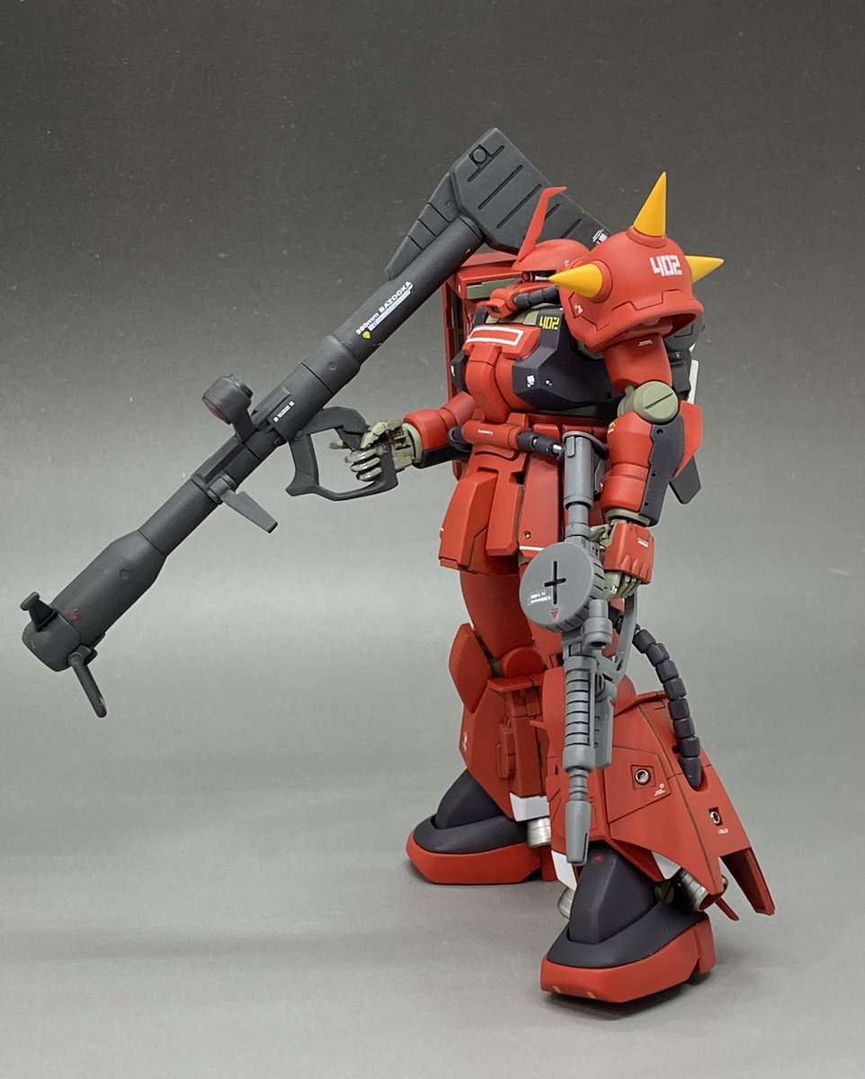 60 569 定番のF2ジョニー完成! オシャレポイントはザクマシンガンです。 足のパイプがガタガタなのはご愛嬌でお願い致します。 #ガンプラ #ザク 21/11/18 15:44