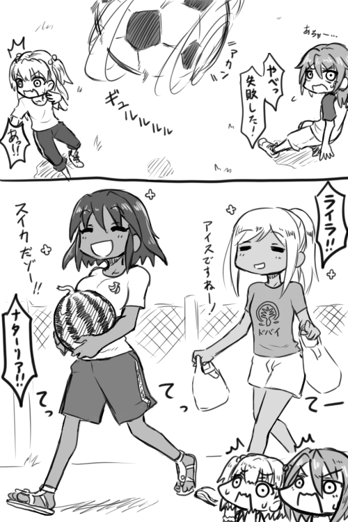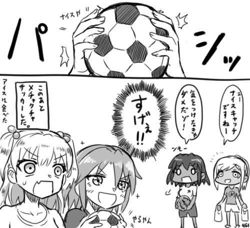 結城晴と城ヶ崎莉嘉とライラさんとナターリアがサッカー得意だといいなっていう漫画です(再掲)
