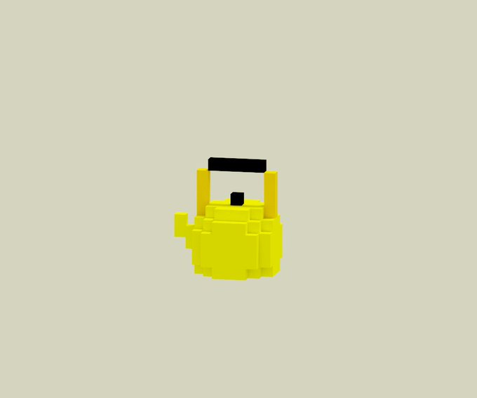 0 3 金のヤカン。 魔法の水が入ってます。 見えないですけど、中はちゃんとくりぬいてあります。 #Voxelart #金のヤカン #魔法の水 22/04/23 23:14