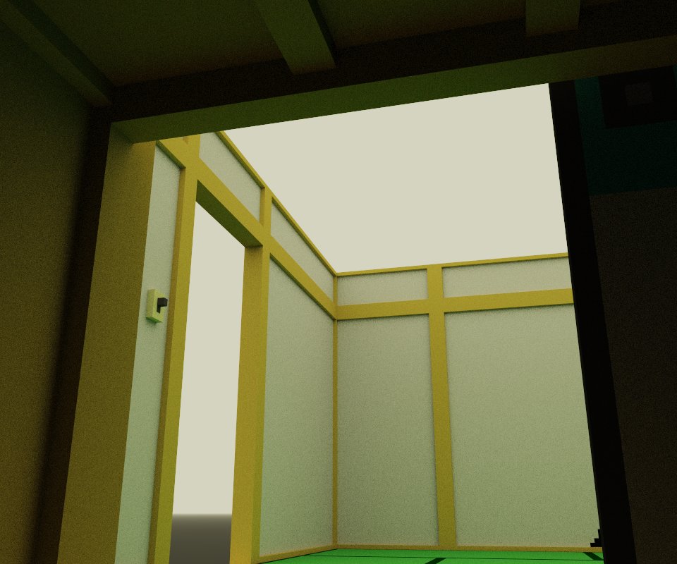 畳とふすま ふすまの青い部分に模様を入れてるんですが、全然目立たんな、これ。 #ボクセルアート #voxelart #畳 #ふすま