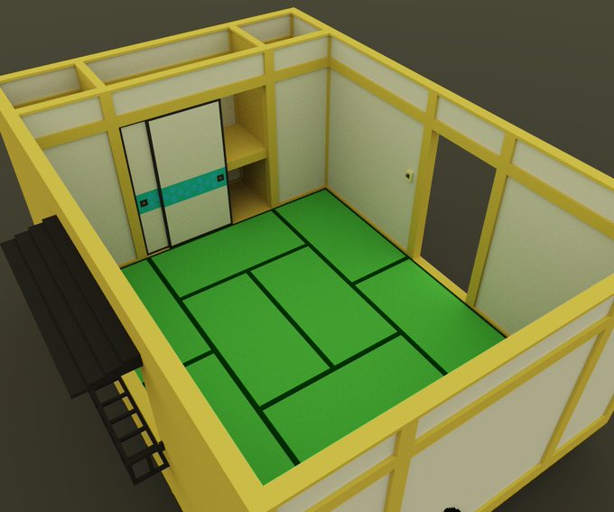 0 2 畳とふすまが入りました。 おかげでグッと昭和の和室感が出ました。 #ボクセルアート #voxelart #畳 #ふすま #昭和の和室 22/04/28 17:30